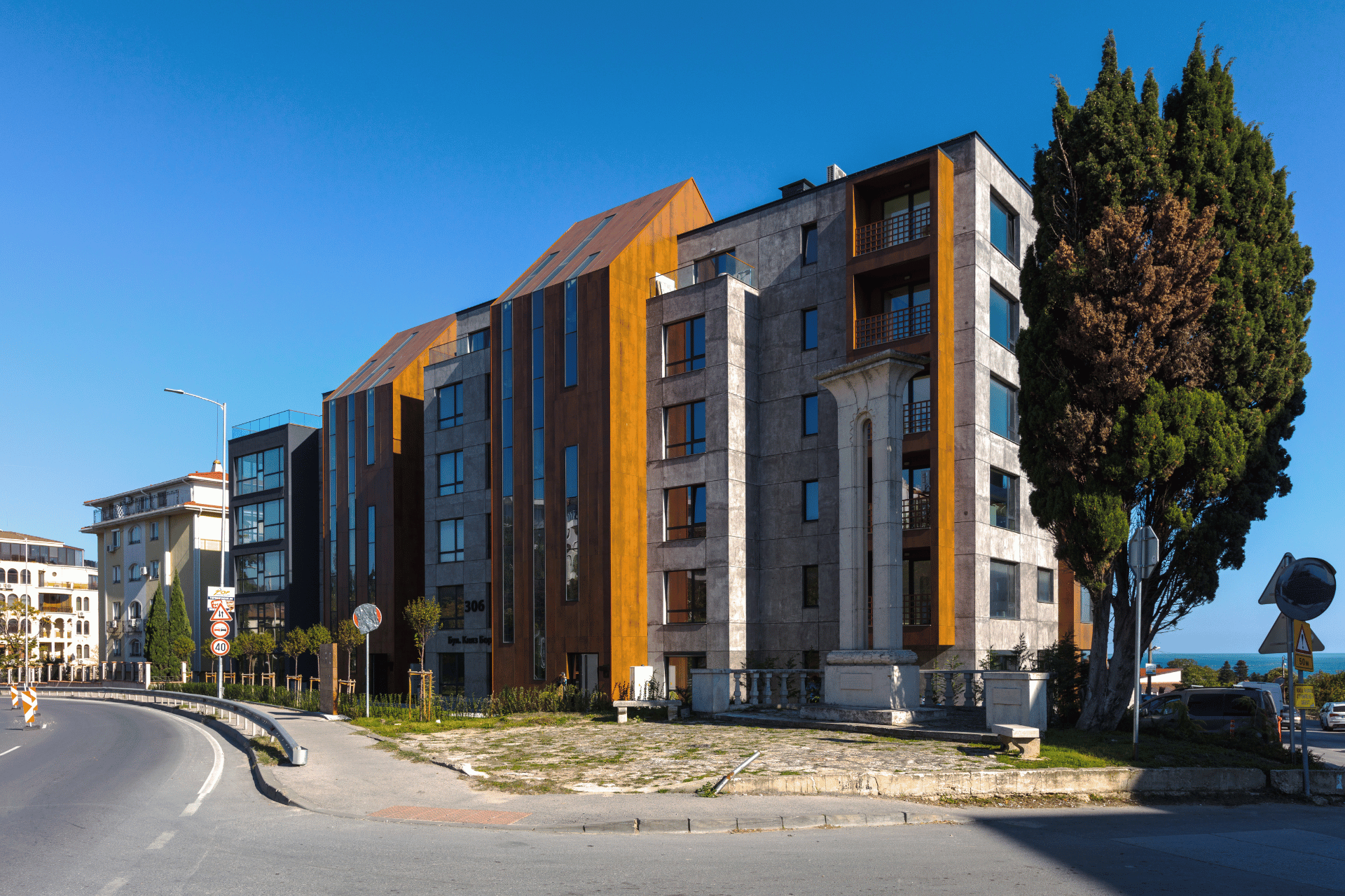 One of the studio’s landmark projects, the Iron Code building, exemplifies its ability to transform abandoned spaces into architectural masterpieces. Situated on the main road between Varna’s city center and the resort complex of St. Constantine and Elena, Iron Code redefines modern living with its avant-garde design, innovative use of Corten-inspired materials, and a striking panoramic sea view. The project integrates sustainability, functionality, and artistic expression, embodying the studio’s dedication to elevating urban aesthetics.